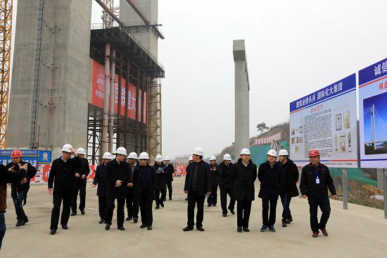 圖五、參加儀式的領(lǐng)導(dǎo)來(lái)賓參觀主橋施工現(xiàn)場(chǎng)
