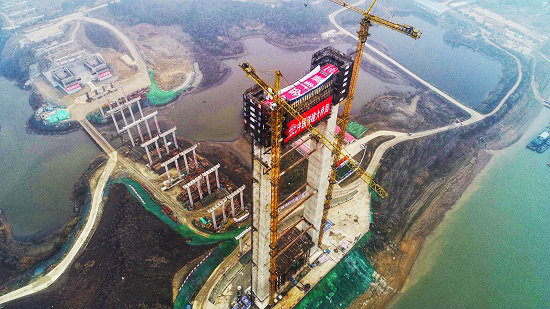 “中國(guó)鐵建第一跨”北索塔成功封頂