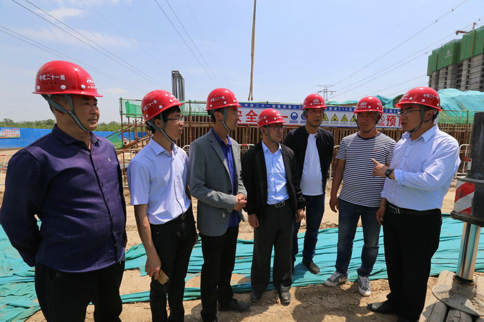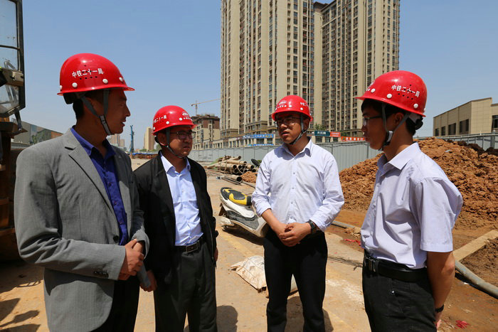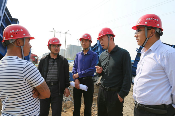 圖為項(xiàng)目部領(lǐng)導(dǎo)與現(xiàn)場(chǎng)技術(shù)人員交談