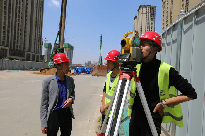 圖為測(cè)量工精準(zhǔn)定位樁基