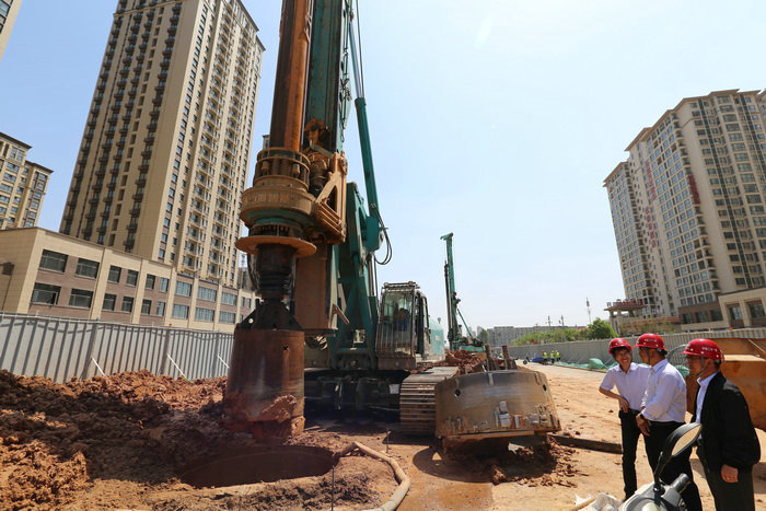 鄭州新鄭市龍湖鎮(zhèn)祥云路,昔日寧靜的街道變成了喧囂的工地,寬闊的馬路上立起了圍檔,左右兩側(cè)僅能容納一輛小車通行,圍檔內(nèi)鉆機(jī)、挖機(jī)、裝載機(jī)、吊車、砼罐車、鋼筋彎曲機(jī)聲、電焊弧光閃爍,合奏了一曲雄壯的交響曲。中鐵二十一局三公司的建設(shè)者,正在這里揮汗如雨建設(shè)祥云路高架橋,一條巨龍即將從祥云路上騰空而起。