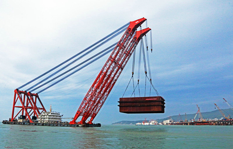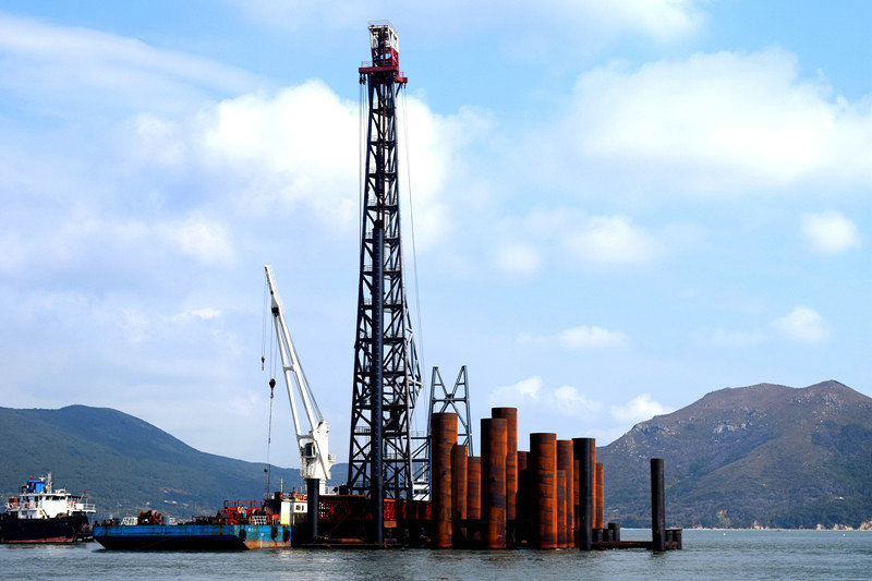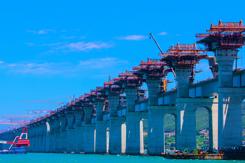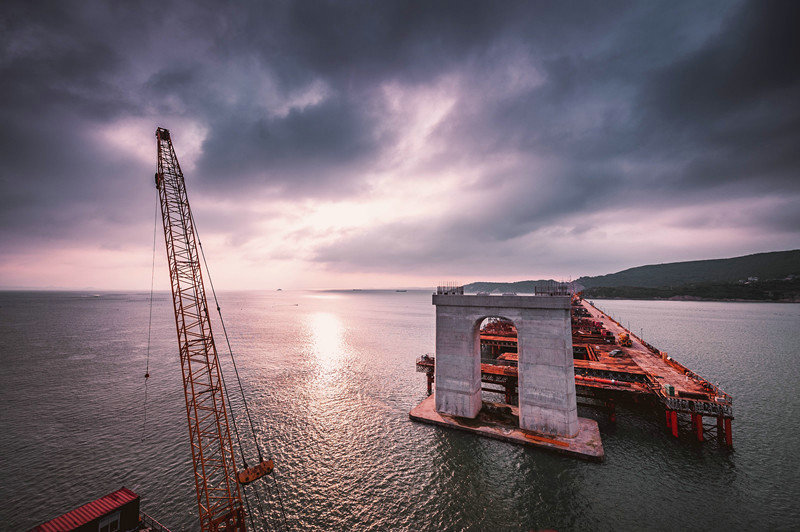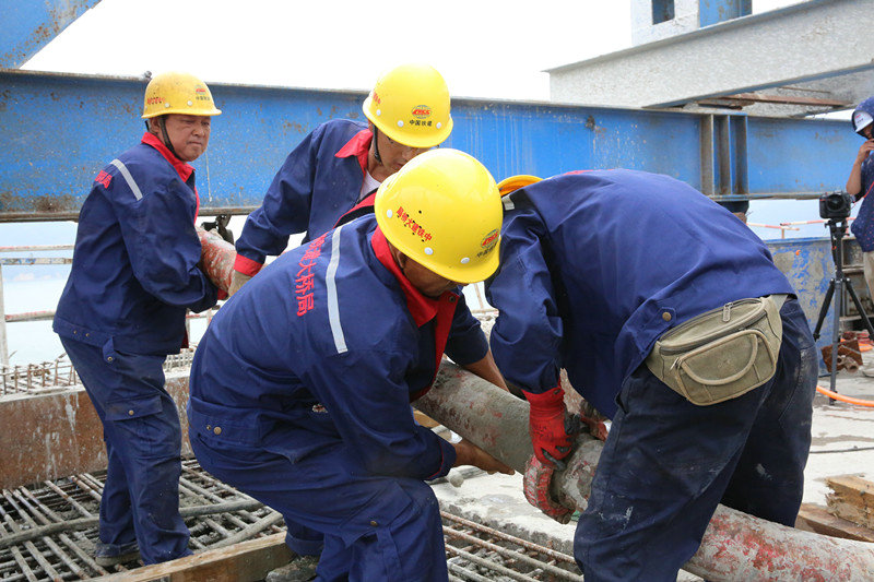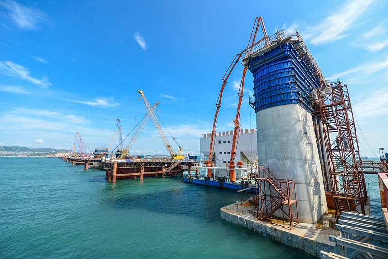 面對惡劣的海況,建設(shè)者沒有畏懼,以科技創(chuàng)新為手段,攻堅(jiān)克難,最終圓滿完成使命。截至2019年7月,中國鐵建大橋工程局集團(tuán)依托該項(xiàng)目已獲得科技進(jìn)步獎(jiǎng)9項(xiàng)、工法19項(xiàng)、授權(quán)專利21項(xiàng)、其中9項(xiàng)為發(fā)明專利、QC成果3項(xiàng)、核心期刊發(fā)表論文近40篇。在全體參建者的共同努力下,成功攻克了“國內(nèi)首臺(tái)臺(tái)風(fēng)區(qū)雙控連做造橋機(jī)”“深水裸巖組合平臺(tái)的搭設(shè)與穩(wěn)固”“深水裸巖大跨長距重載棧橋的搭設(shè)”“大噸位整體鋼吊箱設(shè)計(jì)與施工”“臺(tái)風(fēng)區(qū)碼頭與后場配套設(shè)計(jì)與施工”等多項(xiàng)技術(shù)難題。