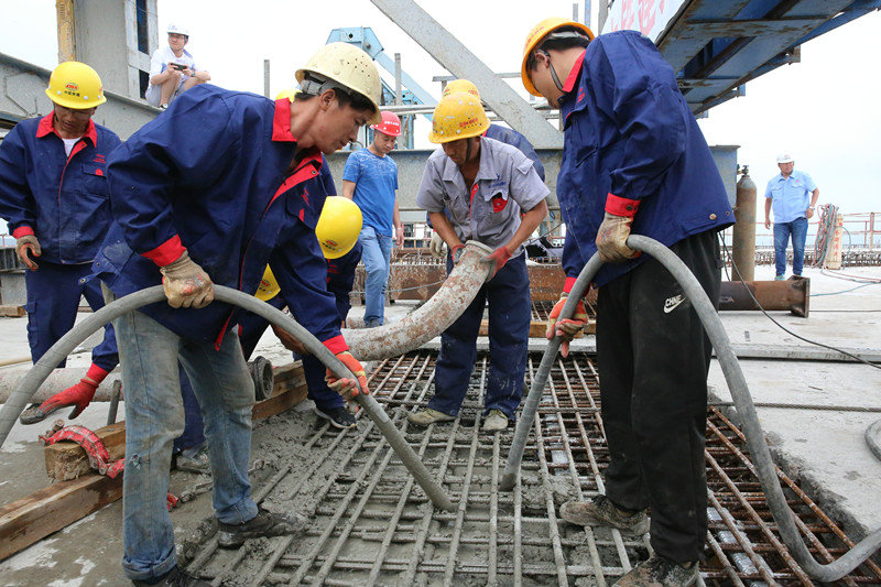 工人澆筑最后一片公路梁