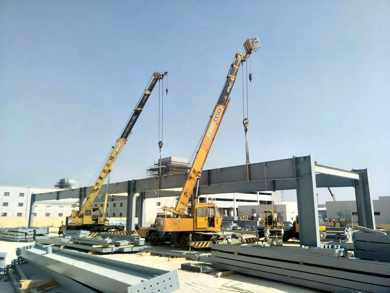 3、中鐵十八局集團(tuán)建設(shè)者在沙特達(dá)曼商業(yè)園區(qū)達(dá)蘭加工車間安裝鋼結(jié)構(gòu)(徐名峰 攝)