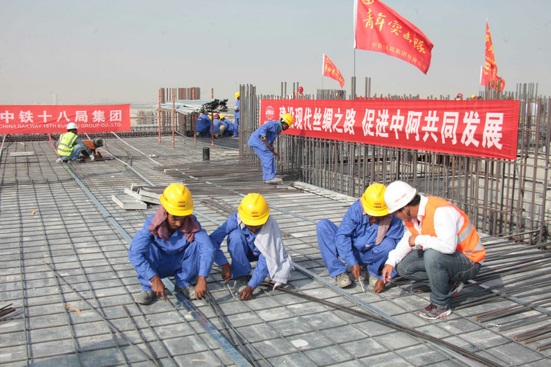 1、中鐵十八局集團(tuán)員工和外籍建設(shè)者在沙特達(dá)曼商業(yè)園區(qū)達(dá)蘭加工車間精心施工(伍振 攝)