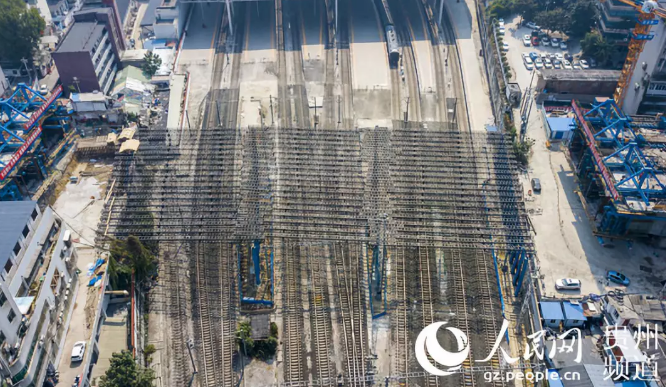 “現(xiàn)在是0點(diǎn)30分,封鎖命令已下達(dá),可進(jìn)站施工。”近日,隨著中鐵八局三公司人民大道項(xiàng)目部駐站防護(hù)員進(jìn)網(wǎng)命令的發(fā)布,50余名身穿防護(hù)背心的項(xiàng)目管理人員與工人有序進(jìn)入貴陽火車站內(nèi)進(jìn)行條形基礎(chǔ)硬隔離搭設(shè)。由此,西南片區(qū)最大上跨滬昆鐵路立交橋防護(hù)棚架施工迎來了首個(gè)Ⅲ級施工點(diǎn)。 這頂“安全帽”總長86米,寬度43米,總面積3698平方,覆蓋貴陽火車站11股道,跨越營業(yè)線施工,防護(hù)棚架底部高于接觸網(wǎng)硬橫跨0.5m,為西南片區(qū)跨度最長、面積最大防護(hù)棚架。