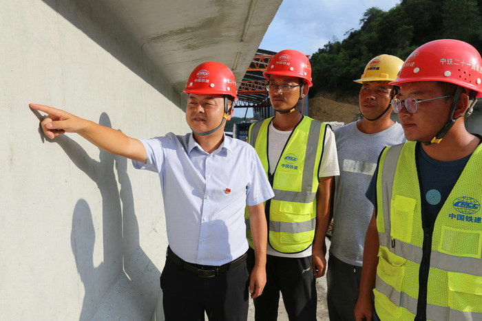 王亞輝與技術(shù)員在梁場(chǎng)檢查預(yù)制梁質(zhì)量2019年7月初,項(xiàng)目中標(biāo)后,公司立即組建了以經(jīng)理王永奇、書記劉富強(qiáng)、常務(wù)副經(jīng)理王亞輝、副經(jīng)理?xiàng)罱堋⑻苽|、總工陳勇、安全總監(jiān)吳大剛為班子成員的項(xiàng)目部。三標(biāo)段主要工程:高良隧道一座,左線2308米,右線2281米,橋梁共計(jì)13座,累計(jì)全5841米,路基挖方519萬(wàn)方、填方370萬(wàn)方,工程量巨大。按照項(xiàng)目班子成員分工,前期作為項(xiàng)目部常務(wù)副經(jīng)理兼總工的王亞輝,主抓項(xiàng)目施工生產(chǎn)經(jīng)營(yíng),在排兵布陣上,成為經(jīng)理王永奇最得力的助手,他的現(xiàn)場(chǎng)管理經(jīng)驗(yàn),敏捷的思路是重難點(diǎn)工程的克星,六賓三標(biāo)綜合排名全線第一,他功不可沒。