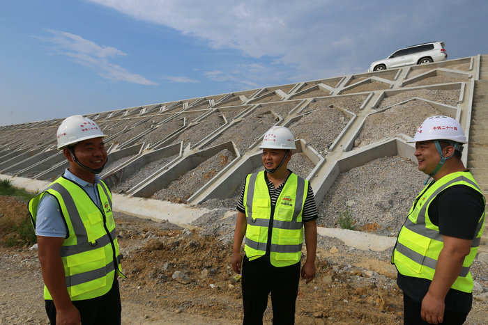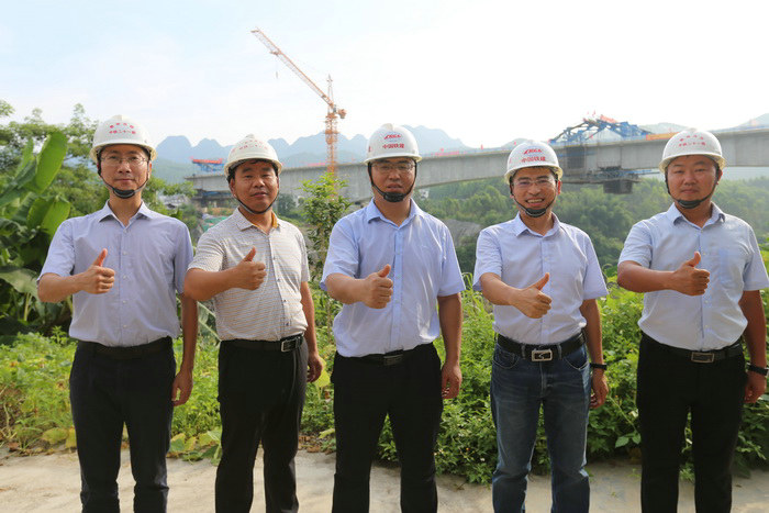 黃炬銀(左一)與常務(wù)副經(jīng)理衛(wèi)福星(中)、副經(jīng)理(何帥)在工地黃炬銀是一個對技術(shù)工作一絲不茍,尤其是對高難度工程,抓質(zhì)量抓規(guī)范施工親歷親為。他不顧五十多度的高溫,下到連續(xù)梁腹板內(nèi)對掛籃移動、模板安裝、鋼筋焊接、鋼筋間距等檢查才放心。他說:“鋼筋焊接不牢、間距差一點都會對梁的受力結(jié)構(gòu)產(chǎn)生重大影響,絲毫馬虎不得。”2021年7月24日,紅渡紅水河特大橋連續(xù)梁順利合龍,這一全線重點控制工程獲得圓滿突破,業(yè)主專門給公司發(fā)去賀電祝賀。