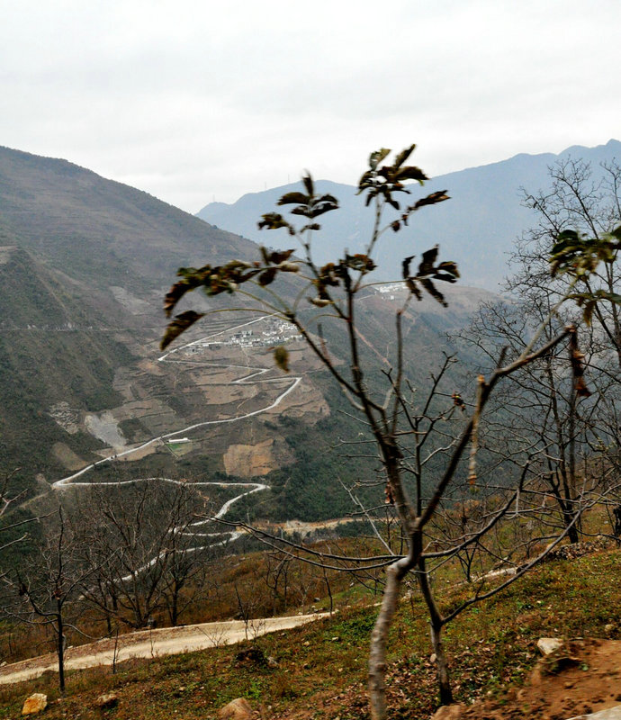 “到了吧”我問村長,“這只是搬遷下來的很小一部分”村長說著,手指著對面那座大山近山頂?shù)牡胤礁嬖V我“那才是我們村……”。順著他手指的方向,我找尋了好一會兒,才在山峭間發(fā)現(xiàn)了一個個的小小凸起,是幾乎與山體融為一體的村民住房。