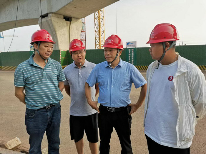 殷盛林(左一)陪同項目經(jīng)理郭雁(右二)檢查工地冥冥之中也許是機緣巧合,與觀音菩薩同一天生日、慈眉善目的殷盛林把修橋鋪路,當成積德行善和一生的事業(yè)來干。他帶領一幫民工兄弟以誠信開路,先做人,后做事。他在團隊管理中,融入中國鐵建先進的企業(yè)文化,秉承中國鐵建“誠信,創(chuàng)新永恒;精品,人品同在”的企業(yè)價值觀,干出了一項項優(yōu)質工程,在業(yè)內享有良好的口碑,工程源源不斷。他干一行,愛一行,專一行,精一行,他的團隊尤其在連續(xù)梁施工中技藝精湛,獨樹一幟,成為了行業(yè)翹楚。