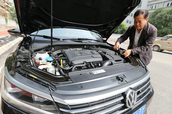 引擎蓋內也是一塵不染,圖為老霍檢查發(fā)動機。