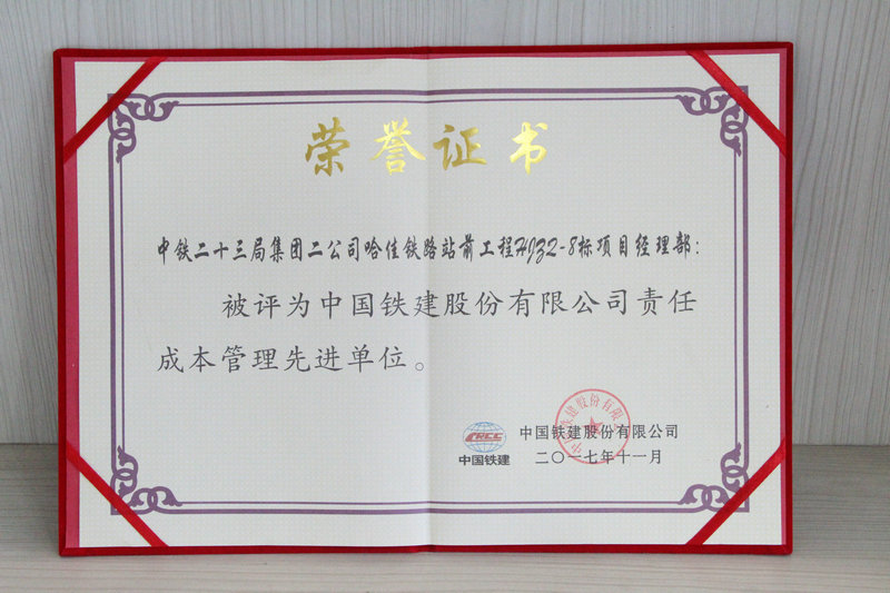 精打細算,細水長流,經(jīng)營工作還看今朝。熱火朝天的情景經(jīng)常在這兩個部門上演,推開門,便如同兩個世界。在他們共同的努力下,哈佳項目部在成本管理、二次經(jīng)營等方面均取得了不俗的業(yè)績,還被評為中國鐵建股份有限公司責任成本管理先進單位。