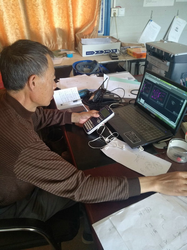 圖為周成興在加班整理資料一開始,周成興不會(huì)操作電腦都,字也不會(huì)打,更別提在電腦上畫圖、使用軟件及藍(lán)牙技術(shù)了。面對(duì)困難,周成興憑著鐵道兵那股敢拼敢闖的精神,通過半年多時(shí)間的不懈努力,他不僅學(xué)會(huì)用五筆打字,而且學(xué)會(huì)了在電腦上畫圖,使用測(cè)量軟件,大大提高了測(cè)量工作效率。