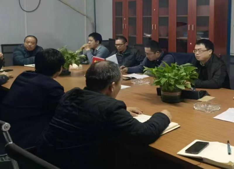 宋庭(右1)和項目經(jīng)理阮超(右2)組織召開加快中梁山隧道施工進度研討會