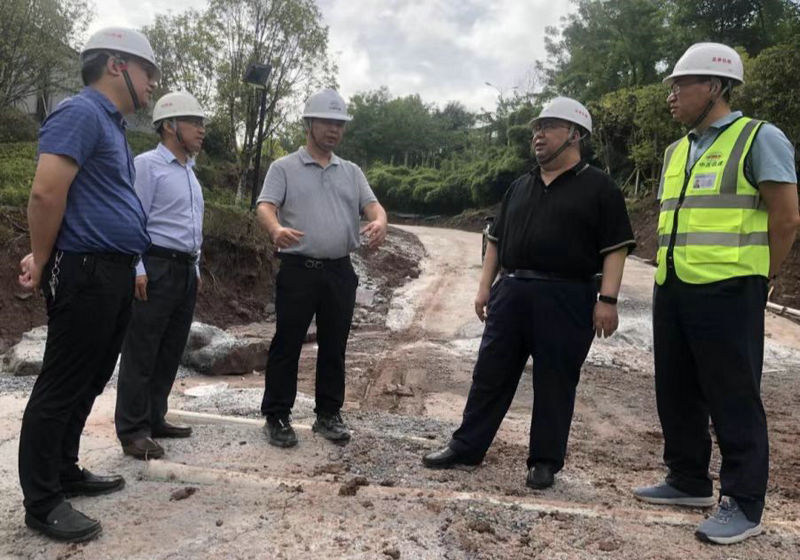 指揮長李兵(右2)、黨工委書記王向平(右1)、副指揮長陳華富(右3)、副指揮長李燕斌(左2)在現(xiàn)場巡查研究有關(guān)問題(張春攝)