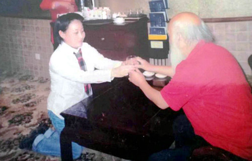 當(dāng)楊老知道她從小就非常喜歡畫畫、而且栩栩如生的時(shí)候,非常開心地要收她做徒弟,郭晶也覺得緣分來之不易,當(dāng)天就拜楊銘儀老師為師了。老師說拜師要跪的,這是郭晶有生以來第一次下跪,跪的就是恩師。