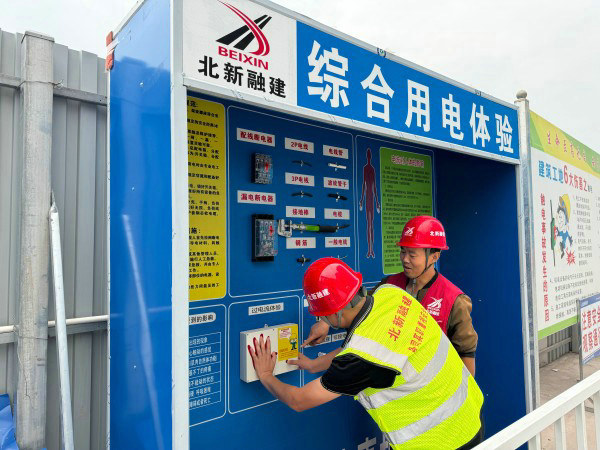 說干就干,王戰(zhàn)利開始了前期調(diào)研工作,他發(fā)現(xiàn)在以前的安全隱患巡視巡查時容易出現(xiàn)工友安全帽使用不規(guī)范以及設(shè)備操作不規(guī)范等情況。在調(diào)研后他參照其他項目打造“安全體驗區(qū)”的成功經(jīng)驗并結(jié)合本項目實際情況精心組織策劃,最后篩選出了一批合適的設(shè)備并投入建設(shè)?,F(xiàn)目前“安全體驗區(qū)”已正式投入使用,該體驗區(qū)設(shè)有安全帽撞擊體驗、機械傷害體驗、綜合用電體驗等多個體驗項目,幾乎涵蓋了施工現(xiàn)場常見的安全隱患。