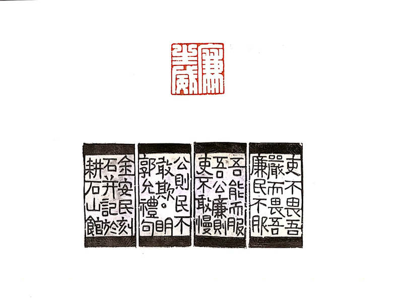 ??????邊款釋文:吏不畏吾嚴而畏吾廉,民不服吾能而服吾公,廉則吏不敢慢公則民不敢欺。明郭允禮句金安民刻石并記于耕石山館。
