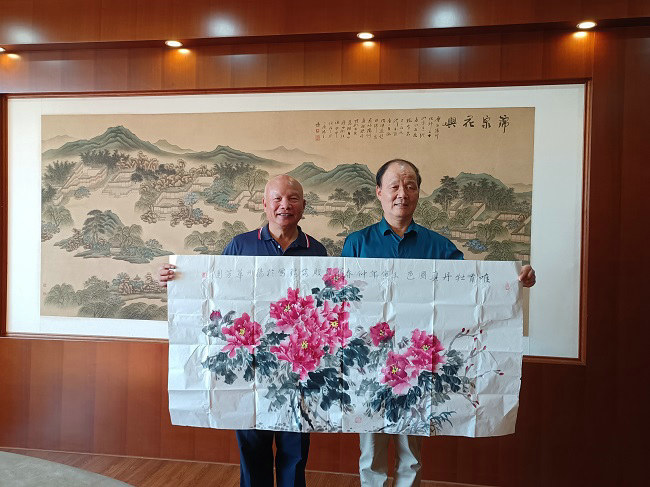 日前,原九師戰(zhàn)友、鐵道兵著名書法家、畫家殷安瑜在江蘇揚州專門邀請江都區(qū)三位全國勞模、全國戰(zhàn)斗英雄、全國先進工作者來揚州作客,為三位英雄模范贈送其書畫作品并與他們共進午餐。三位英雄模范分別是:陳巧云、陳鸝、徐廣來。