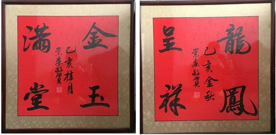 同時帶來的還有“情滿天山”豎向書法一禎,當(dāng)劉合坤戰(zhàn)友展開作品時,我是非常的興奮與喜悅,自然心情激動,立馬浮現(xiàn)出在新疆天山參建南疆鐵路的場景。真可謂是心有靈犀,我也曾在2012年寫過《難忘天山歲月》的文稿,同時刊登在《鐵道兵戰(zhàn)友網(wǎng)》《中國鐵路工程建設(shè)網(wǎng)》??吹竭@幅精美的書法作品與詞意,自然會激起我想起曾在天山深處的那段難忘歲月。也正是因為有了那五年多在施工連隊的艱苦歷練,才讓我養(yǎng)成了無論施工有多累、有多忙,每天都要擠出兩小時左右來系統(tǒng)地讀書學(xué)習(xí),堅持一星期要寫一篇《每周一文》,直到現(xiàn)在我還保持著這個習(xí)慣。兵改工后,我被單位推薦外送地方中醫(yī)院校進修學(xué)習(xí)并考取中醫(yī)師資格證,由此才改變了我的職業(yè)生涯。之后的三十多年,除了喜愛讀書的習(xí)慣沒變外,在企業(yè)的幾次改制中也兼職過幾種其它工作,直到退休仍然是保持原地踏步,初心未改。2019年9月26日,是我兒子結(jié)婚的慶典日期,原本著婚事從簡,不擾動過多的親戚朋友、同學(xué)、戰(zhàn)友。王崇森戰(zhàn)友可能是從合坤戰(zhàn)友處得知的這個信息,于是寫好了這兩禎喜慶的墨寶讓合坤戰(zhàn)友帶到了婚禮現(xiàn)場,在婚慶主持人的策劃下,由劉合坤和郭圣柏兩戰(zhàn)友在婚禮現(xiàn)場進行展示。這一別開生面的婚慶程序安排,即刻將婚禮現(xiàn)場推向了歡樂喜慶的高潮,也展現(xiàn)出了我們鐵道兵人的文化底蘊與特色創(chuàng)意,受到了婚慶現(xiàn)場眾多親朋好友與戰(zhàn)友們的共同好評與點贊。在此我再一次的向王崇森老戰(zhàn)友,劉合坤戰(zhàn)友,郭圣柏戰(zhàn)友表示衷心的感謝!