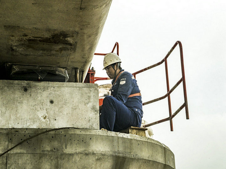 (黃黃高鐵蘄河特大橋200孔架設現(xiàn)場工人作業(yè))