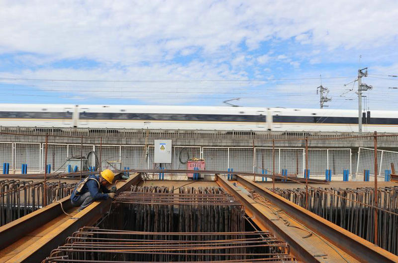 浙江湖州:由中鐵十一局集團承建湖(州)杭(州)鐵路項目施工現(xiàn)場,勞動者們克服連日高溫,以責任和擔當堅守在各自的工作崗位上,在高溫天氣,采取干兩頭、歇中間、白天少干夜間多干的模式,攻堅克難,按計劃推進進度節(jié)點目標實現(xiàn)。