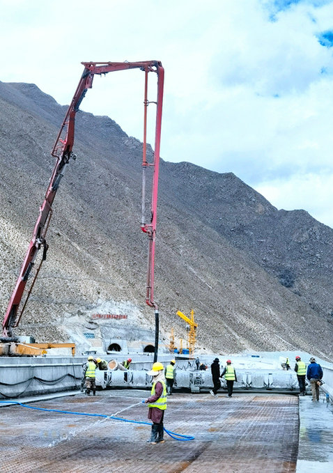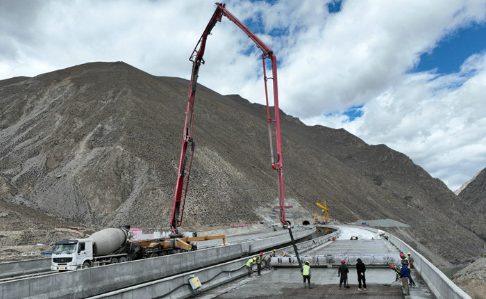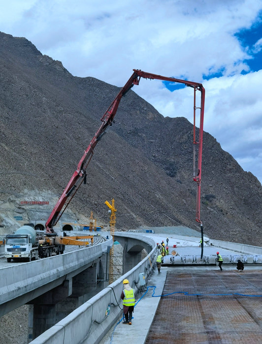 鐵路工程建設(shè)網(wǎng)訊(通訊員馬軍鵬)中鐵十五局集團雅葉高速拉日十標項目雅魯藏布江大橋位于拉薩市尼木縣卡如鄉(xiāng)卡如村西側(cè)約700米,跨越雅魯藏布江。大橋為左右線分離式,單幅橋?qū)?2.75米,公路等級為高速公路雙向4車道,設(shè)計速度100km/h,車輛荷載等級為公路Ⅰ級。橋梁下部結(jié)構(gòu)采用柱式墩、實心薄壁墩、空心薄壁墩、雙肢等截面矩形實體薄壁墩,橋臺為樁柱式橋臺,基礎(chǔ)結(jié)構(gòu)為樁基。左線橋梁全長734.5m,右線橋梁全長725.5m。其中主橋采用變截面預(yù)應(yīng)力混凝土連續(xù)剛構(gòu),兩岸引橋結(jié)合地形條件采用30m預(yù)應(yīng)力混凝土先簡支后橋面連續(xù)小箱梁和40m預(yù)應(yīng)力混凝土先簡支后橋面連續(xù)T梁。兩岸橋墩位于河谷兩岸陡峭的山坡上,墩身較高、現(xiàn)澆段跨度較大,安全風(fēng)險較高。大橋與4月底架通,目前正進行橋面鋪裝施工。