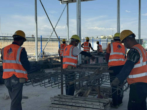 圖為兵團(tuán)建工水電集團(tuán)市政路橋公司第二筑路項(xiàng)目部預(yù)制蓋板鋼筋加工現(xiàn)場(chǎng)。工人們?cè)诳崾畹臒崂讼氯缁鹑巛钡募庸や摻?,為蓋板涵的施工提高施工效率、減少施工過(guò)程中的誤差,截至目前儲(chǔ)備鋼筋約80余噸、預(yù)制蓋板約百余塊。(汪文娟攝)