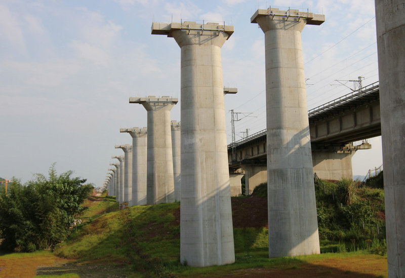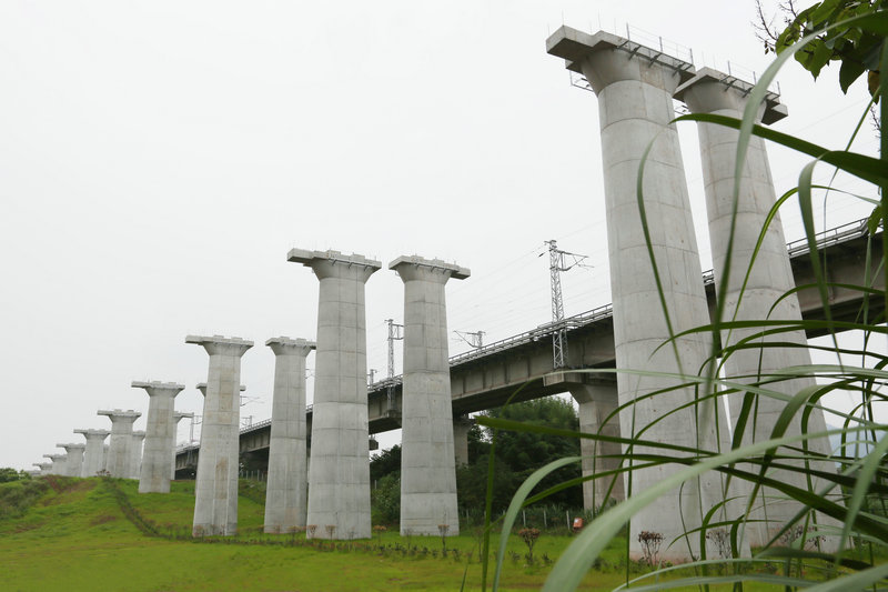 光潔亮麗的的珞璜南特大橋橋墩 緊鄰既有渝貴鐵路的重慶鐵路樞紐東環(huán)線一角