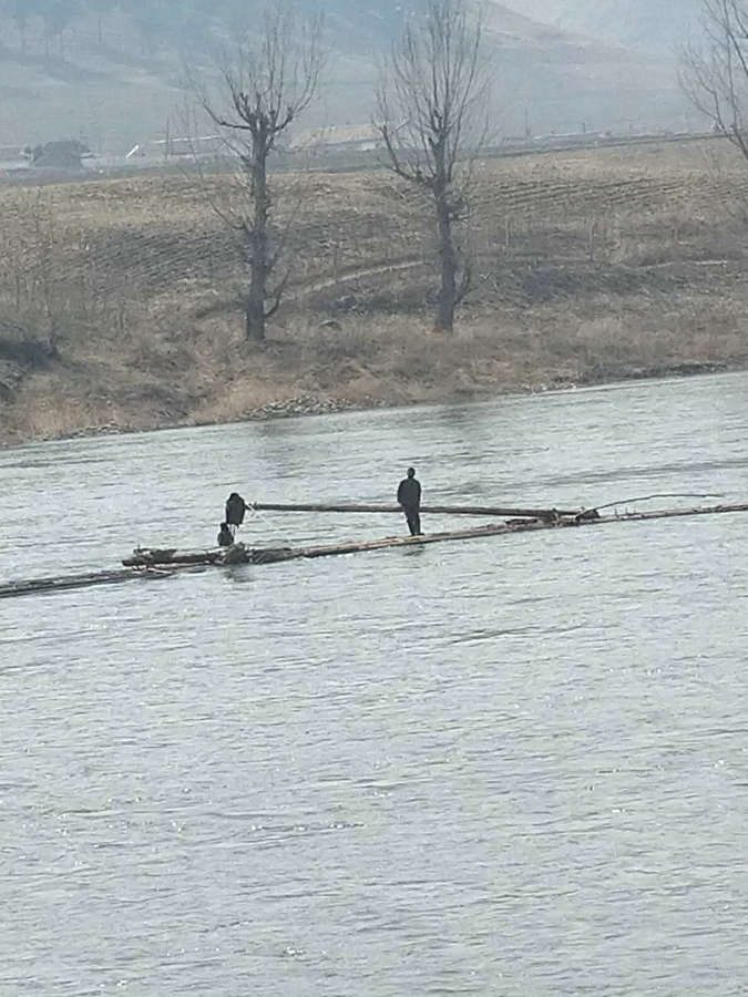 江中木排朝鮮放,中朝隔著鴨綠江,