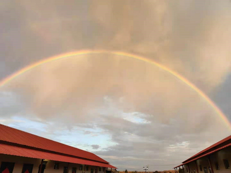 又是這樣一個(gè)平淡的早晨,我來(lái)到這里工作已經(jīng)7個(gè)月了,每天都是這樣,似乎和往常沒(méi)什么不同,可是又有一些不同。抬頭一看,喔,好美的一道彩虹,不偏不倚,正好在我頭頂。之前,雖然也見(jiàn)到過(guò)彩虹,但早上六點(diǎn)鐘的彩虹還是第一次見(jiàn),它是那么的美麗,那么的充滿活力,讓人不由得駐足觀看。不得不說(shuō),能看到這么美好的一幕,讓我的心情瞬間美麗了起來(lái)。