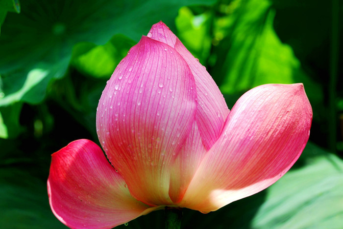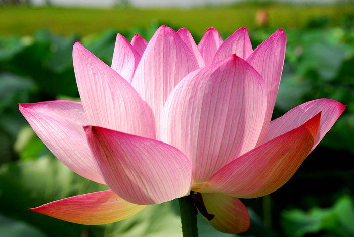 夏天是荷花盛開的季節(jié)。荷花是一種水生花卉,根系橫向生長,扎根在河塘的淤泥之中。長出水面的莖干筆直渾圓,葉片呈圓形,碧綠色,大小在25-90厘米之間。荷花的直徑在10-20厘米之間,有粉、紅、白3種顏色,花瓣脈路清晰,花蕊為金黃色,非常美麗。它通常在春季生根、發(fā)芽,然后在夏季逐漸長大。