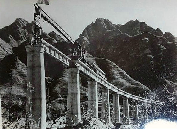 和平建設(shè)輝煌。鑄鋼鐵巨龍萬(wàn)里長(zhǎng)??闯衫ソ^壁,襄渝惡水,南疆暴雪,青藏殘陽(yáng)?;犟v京津,夢(mèng)牽林海,五岳三山驅(qū)雨狂。豐碑聳,贊雄師浴火,再譜華章。