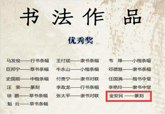 近日,“中國夢(mèng)·勞動(dòng)美--喜迎二十大 建功新時(shí)代”青海省職工群眾書法國畫攝影展作品征集評(píng)選活動(dòng)評(píng)選結(jié)果揭曉,中鐵二十一局四公司職工金安民篆刻作品喜獲書法作品優(yōu)秀獎(jiǎng)。本次評(píng)選共征集書法作品325幅,經(jīng)評(píng)委會(huì)評(píng)審,最終83幅書法作品入展。