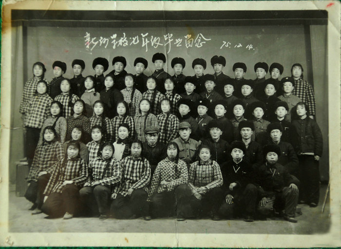 我和老師、同學(xué)們的這張合影,拿到手后像寶貝一樣呵護(hù),小心翼翼地裝在一個相框里,掛在老家墻上最顯眼的位置。家鄉(xiāng)春冬季節(jié)十分寒冷,燒柴做飯冒出來的濃濃熱氣彌漫在整個房間,襯在相框背后的有色紙受潮,將照片邊角浸染的變了色,但不影響觀看。