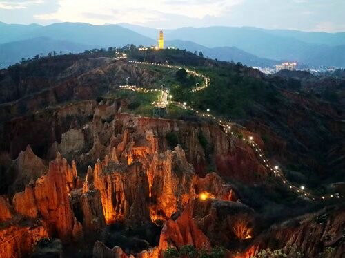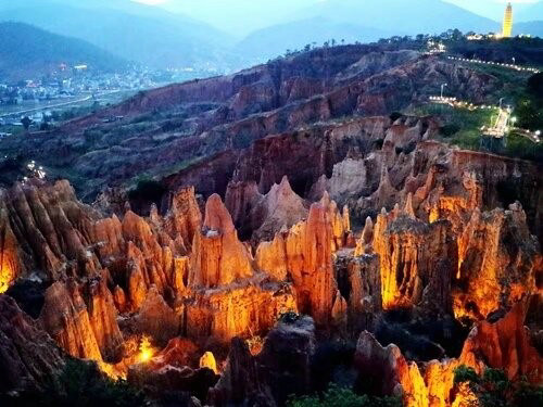 土林是一種獨(dú)特的流水侵蝕地貌,是水土流失現(xiàn)象造成的“美麗錯(cuò)誤”。她的景觀會(huì)在不同季節(jié)、不同時(shí)間、不同氣候、不同角度有不同的韻味。陽(yáng)光下的土林造型硬朗、醒目;雨霧中的土林若明若暗,朦朧含蓄;冬季的土林溫暖如春,夏季的土林炎熱酷暑。而且由于土林穩(wěn)定性差,易于流失,所以有些土柱今年似雞,明年似狗,充滿了變幻的美。土林是上天賜給南澗的一個(gè)寶貝,千百年來(lái),她一直在南澗縣城附近期待著人們?nèi)バ蕾p。