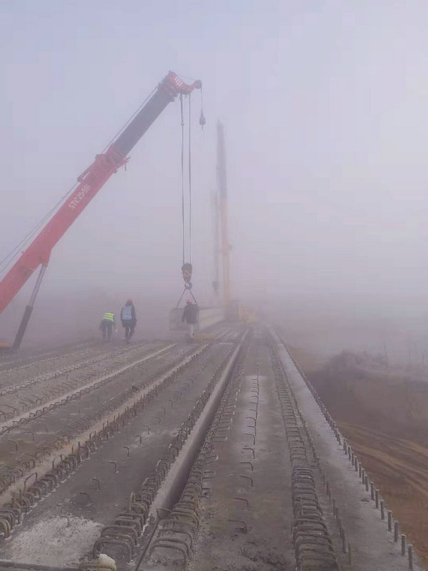 據(jù)悉, K187+340車行天橋全長332.281米,橋面寬8.5米,由4孔16米24片簡支空心板梁組成。梁體重分別為30.5噸和25噸。其中上部結(jié)構(gòu)為預(yù)應(yīng)力混凝土(后張)簡支空心板梁,下部結(jié)構(gòu)橋臺采用柱式臺,橋墩采用柱式墩,墩臺為樁基礎(chǔ),樁基礎(chǔ)全部為摩擦樁。 承擔(dān)架梁施工任務(wù)的中鐵二十三局二公司甜永項目部,克服了施工作業(yè)面窄,安全風(fēng)險高等 不利因素,對便道整修,板梁運輸、梁體就位、汽車吊裝、支座安裝、隊伍組織、安全技術(shù)保障等進(jìn)行了詳細(xì)部署及技術(shù)交底,制定了嚴(yán)密的架梁專項施工方案、作業(yè)流程圖和應(yīng)急預(yù)案。架梁過程中,他們強(qiáng)化對每一道施工工序的風(fēng)險點跟蹤和檢查,加強(qiáng)聯(lián)防聯(lián)控,嚴(yán)格提提、運、架梁過程中的標(biāo)準(zhǔn)化作業(yè),確保施工安全萬無一失。