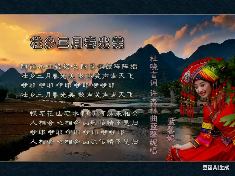 還記得《壯鄉(xiāng)三月春光美》初成時,我總盼著它能多一種靈動的表達(dá)。是你們接過這份期待,張曉峰老師的編配讓壯鄉(xiāng)的春風(fēng)順著音孔流淌,大笨蟲老師的制譜將抽象的情感凝練成清晰的符號,月之寒星老師的示范又用細(xì)膩的吹奏,把《走壯鄉(xiāng)》的質(zhì)樸、《江南水鄉(xiāng)》的溫婉全揉進了絲音里。原本停在紙頁上的文字,忽然就有了呼吸,能跟著旋律走進街巷、飄向田野。