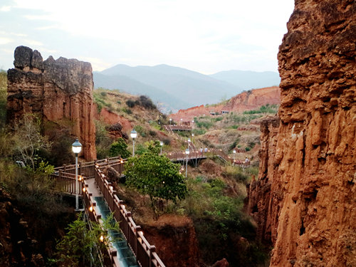 土林是一種獨特的流水侵蝕地貌,是水土流失現(xiàn)象造成的“美麗錯誤”。她的景觀會在不同季節(jié)、不同時間、不同氣候、不同角度有不同的韻味。陽光下的土林造型硬朗、醒目;雨霧中的土林若明若暗,朦朧含蓄;冬季的土林溫暖如春,夏季的土林炎熱酷暑。而且由于土林穩(wěn)定性差,易于流失,所以有些土柱今年似雞,明年似狗,充滿了變幻的美。土林是上天賜給南澗的一個寶貝,千百年來,她一直在南澗縣城附近期待著人們?nèi)バ蕾p。