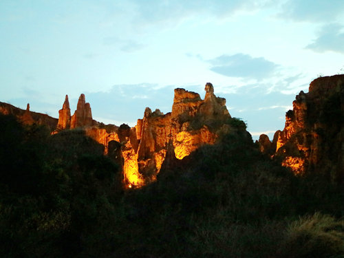 行在步道之間,猶如走進(jìn)了大自然雕塑的藝術(shù)魔宮,沿著步道在土林中漫游。穿越其間,仰頭可觀賞到“少女梳妝”、“嫦娥奔月”、“八仙過海”、“仙女下凡”、“戰(zhàn)馬騰空”、“雙獅望月”、“雄鷹展翅”等等奇異的造型,如同闖進(jìn)了神奇莫測的仙境。
