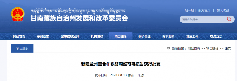 8月13日,為進(jìn)一步完善區(qū)域快速鐵路網(wǎng)布局,改善沿線交通基礎(chǔ)設(shè)施條件,促進(jìn)“三區(qū)三州”深度貧困地區(qū)群眾脫資致富和經(jīng)濟(jì)社會(huì)高質(zhì)量發(fā)展,國(guó)鐵集團(tuán)、甘肅省人民政府同意調(diào)整新建蘭州至合作鐵路可研報(bào)告,并以鐵發(fā)改函〔2020〕290號(hào)對(duì)新建蘭州至合作鐵路調(diào)整可研報(bào)告予以批復(fù)。
