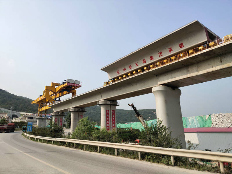 跨公路架橋歷來為鐵路安全施工的重中之重。為確保此次跨317省道架梁任務圓滿完成,項目部高度重視、積極準備,提前進行實地考察,多次研究討論,確定跨公路架梁時安全防護專項方案;項目領導高度重視,親臨現(xiàn)場盯控,結(jié)合實際情況,確定在車流量較少的晚8點以后開始架設,并采取在架梁兩側(cè)樹立警示牌、安排多名防護人員對往來車輛進行疏導等安全防護措施;現(xiàn)場作業(yè)人員認真負責,銜接無暇,在安全無誤完成各項工序的同時確保了變跨過孔、架梁時橋下無人通行,確??缡〉兰茉O任務圓滿完成。