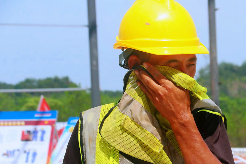 “看著廠房在自己的手中一點點從無到有搭建起來,與這種成就感比起來,曬一點簡直不值一提!”上午10點,烈日炎炎下的施工現場沒有任何遮擋,火辣辣的陽光高直接照射在高空作業(yè)人員張工身上,談及高溫作業(yè),他更相信堅守的力量。在梨東項目,像張工一樣的人還有很多,他們頭頂驕陽,忍受著烈日“烤”驗,堅守崗位,在現場規(guī)定的夏季有限作業(yè)時間內,用行動擔起自己的責任。