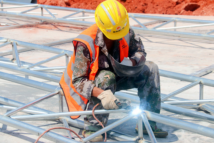 此時,廠房附近,地面被烈日炙烤的滾燙,用點溫器一測量,地表溫度已超過50攝氏度,地上的鋼結構也被曬得泛著熱浪。焊接工人們工作服被汗水浸濕了一大半,臉上的汗水還在不停地往下淌,身上裸露的皮膚被曬到紅腫甚至蛻皮,他們全然不顧,只是不時用衣衫擦拭著臉上留下的汗水,便又投入到緊張地焊接作業(yè)中。高溫下,重復的工作容易讓人心情煩躁和疲憊,但他們卻絲毫沒有懈怠,依然像釘子一樣扎在自己的崗位上,用汗水與行動譜寫出奉獻之歌。