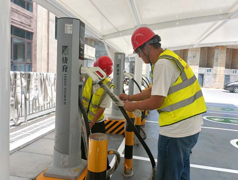 同時(shí),項(xiàng)目部構(gòu)建起全鏈條協(xié)同機(jī)制,對(duì)內(nèi)優(yōu)化施工組織方案,對(duì)外與多部門建立“綠色通道”,以并聯(lián)審批、容缺受理等創(chuàng)新舉措大幅壓縮建設(shè)周期。面對(duì)山地施工的復(fù)雜地形,建設(shè)團(tuán)隊(duì)采用模塊化運(yùn)輸、裝配式安裝工藝,在保障工程質(zhì)量的前提下,單站點(diǎn)建設(shè)效率大幅提升。建設(shè)期間,項(xiàng)目嚴(yán)格執(zhí)行國標(biāo)充電設(shè)施安全規(guī)范,選用具備IP54防護(hù)等級(jí)的充電樁設(shè)備,配套智能漏電保護(hù)、過溫報(bào)警裝置。每個(gè)站點(diǎn)均設(shè)置標(biāo)準(zhǔn)化消防設(shè)施,安裝全天候監(jiān)控系統(tǒng),并建立月度巡檢、季度維保的長效機(jī)制,以“人防+技防”雙重保障,筑牢安全防線。