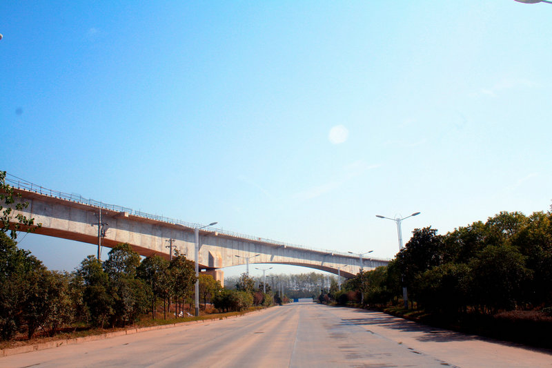 由武漢公司承建的新港鐵路3標項目,全長22.767公里,共有特大橋5座,各種大中小橋17座,其中繞城特大橋穿越陽邏城區(qū),上跨武漢繞城高速,沿途交通錯綜復雜,安全管理壓力大。全長1360米,共計34墩2臺,連續(xù)梁3跨,最大跨度115米?;A采用鉆孔樁基礎;橋墩為雙線圓端形實心橋墩,橋臺為矩形空心橋臺。