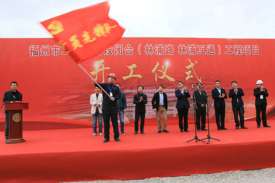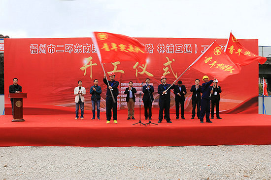 儀式由福州市市政建設開發(fā)有限公司總經理助理趙榮鑫主持,福州市市政建設開發(fā)有限公司副總經理郭向徽、監(jiān)理單位總監(jiān)程傳美、中鐵建大橋工程局集團一公司總經理張文軍分別致辭;黨員,是團隊的帶頭骨干,要發(fā)揮先鋒模范作用,帶領項目團隊攻堅克難,完成任務。儀式上,福州市市政建設開發(fā)有限公司董事長李學準為項目部黨員先鋒隊授旗;青年興則國家興,青年強則國家強。工程開工,青年當先。福州市市政建設開發(fā)有限公司副總經理郭向徽、集團公司南方指揮部指揮徐文斌、一公司福建指揮部指揮李順軍為項目三個青年突擊隊授旗;福州市市政建設開發(fā)有限公司董事長李學準宣布開工。