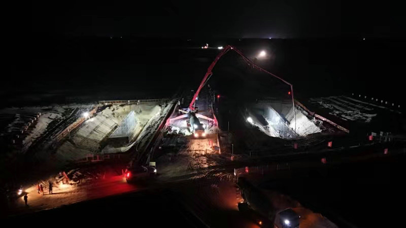 為保證施工質(zhì)量和澆筑任務(wù)順利完成,項目部堅持質(zhì)量與安全并重、技術(shù)與施工并行,認(rèn)真編制混凝土施工專項方案并做好安全技術(shù)交底,嚴(yán)格把關(guān)承臺施工每道工序,全程盯控承臺施工綁鋼筋、立模板等各個環(huán)節(jié)。同時成立混凝土澆筑工作小組,采取錯峰施工,避開白天高溫天氣,主要集中在下午8點到第二天早上6點澆筑混凝土,實現(xiàn)了項目部、砼拌和站和作業(yè)隊分工協(xié)作、緊密聯(lián)動、默契配合,確?;炷涟柚?、運輸、澆筑各個工序高效銜接。