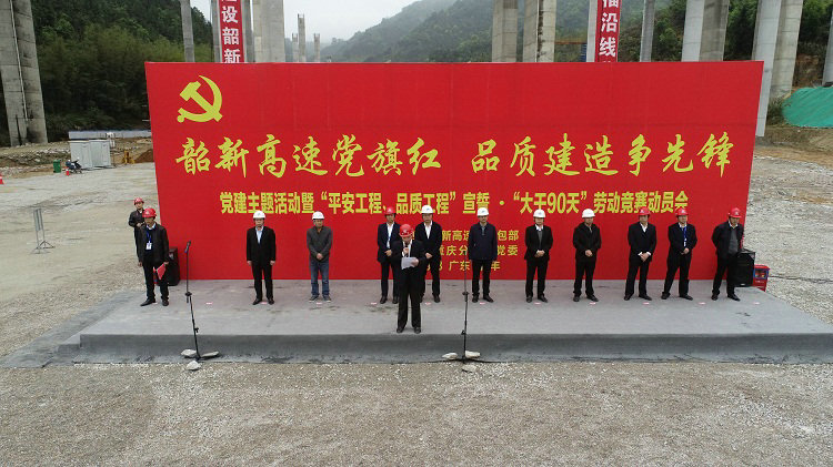 “韶新高速黨旗紅,品質(zhì)建造爭先鋒”黨建主題活動(dòng)啟動(dòng)儀式,為積極響應(yīng)韶新高速公路PPP項(xiàng)目總承包部“大干90天、建設(shè)平安韶新、品質(zhì)工程”勞動(dòng)競賽號(hào)召,充分發(fā)揮項(xiàng)目黨組織和黨員在韶新高速公路急難險(xiǎn)重任務(wù)建設(shè)中的戰(zhàn)斗堡壘和先鋒模范作用,動(dòng)員廣大建設(shè)員工在施工生產(chǎn)中的積極性、主動(dòng)性和創(chuàng)造性,安全、優(yōu)質(zhì)、環(huán)保、高效完成年度奮斗目標(biāo)。